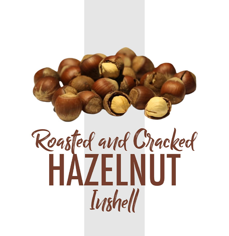 It is a product obtained by cracking the shelled hazelnuts and roasting by applying heat treatment without leaving the shell and has a special aroma due to being roasted with its shell.